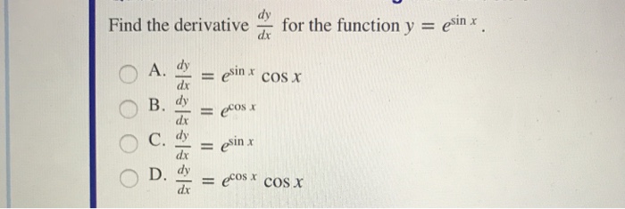 E cos x derivative. Free integral calculator solve indefinite definite and multiple integrals with all the steps. You can remember this order of the product rule with the mnemonic left dee right right dee left ldr rdl lastly is the chain rule which describes the derivative of a composition of functions. Differentiate using the exponential rule which states that is where. Find the derivative d dx e cos 2x differentiate using the chain rule which states that is where and.