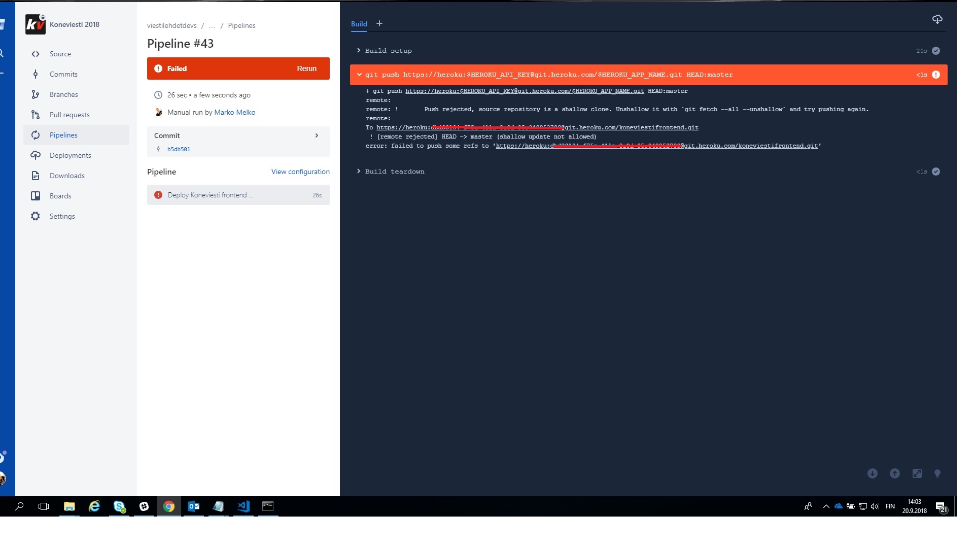 Bitbucket Pipeline To Heroku Fails Push Rejected