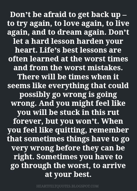 Don T Be Afraid To Get Back Up To Try Again To Love Again To Live Again And To Dream Again Heartfelt Love And Life Quotes