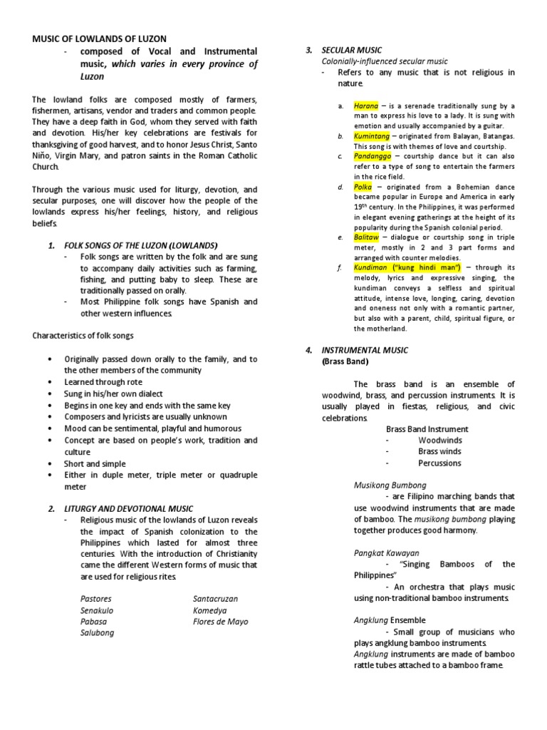 Grade 7 Music Spanish Influence In Secular Music Music Of The Lowlands Of Luzon 2