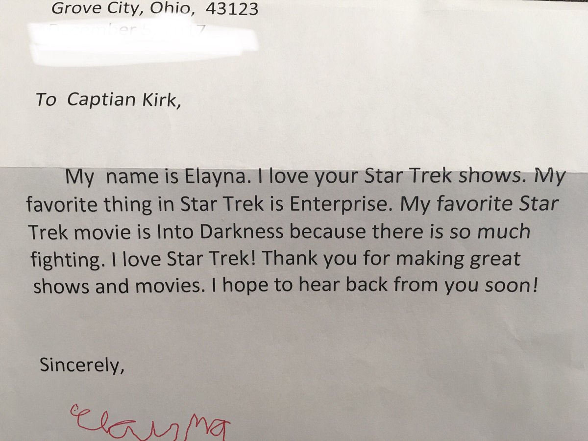 Fanmail Dearest Elayna Letter Glad Hear Ship Captain Kirk Live Exciting Adventures Love Captain Kirk William Shatner Scoopnest